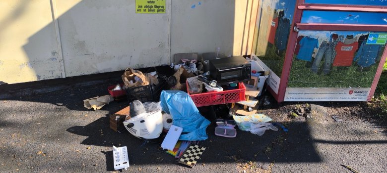 Leider wird in letzter Zeit am Pavillon Schulstraße regelmäßig Sperrmüll sowie Elektroschrott vor dem Eingang des Deutschen Roten Kreuzes an den Kleidercontainern abgelagert.
