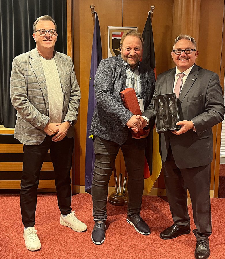 v.l.: Peter Rosenbaum (Büroleiter), Wolfgang Karbaum, Adolf T. Schneider (Bürgermeister)