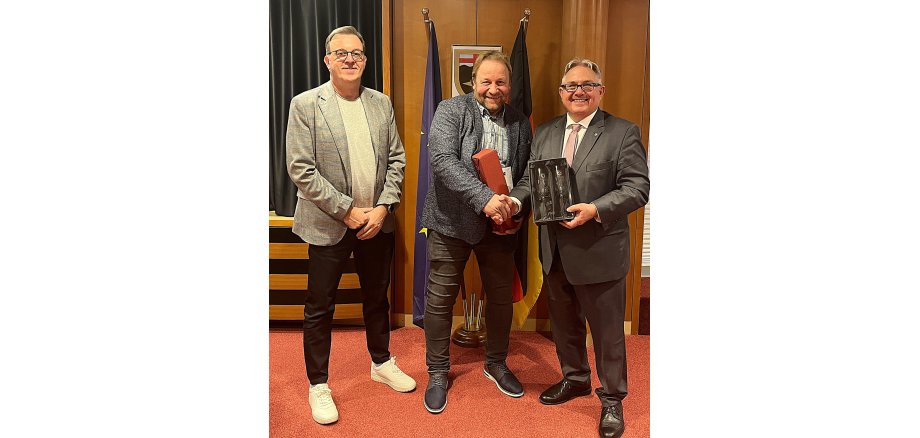 v.l.: Peter Rosenbaum (Büroleiter), Wolfgang Karbaum, Adolf T. Schneider (Bürgermeister)